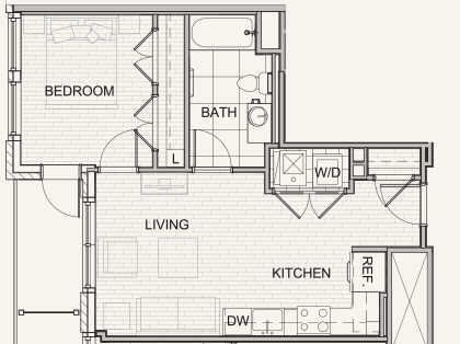 This one bedroom apartment is a spacious 596sf with a private balcony overlooking the garden terrace. Walk-in closet, large entry way, stainless appliances including washer & dryer are just some of the amenities.