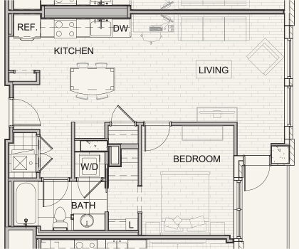 This one bedroom apartment is a spacious 752sf with a private balcony overlooking the garden terrace. Walk-in closet, large entry way, stainless appliances including washer & dryer are just some of the amenities.