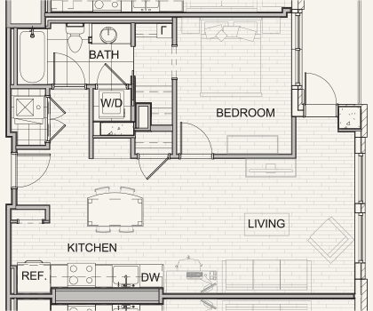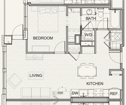 This compact but efficient 586 sf studio apartment has a private balcony overlooking the garden terrace. Stainless appliances including washer & dryer are just some of the amenities.