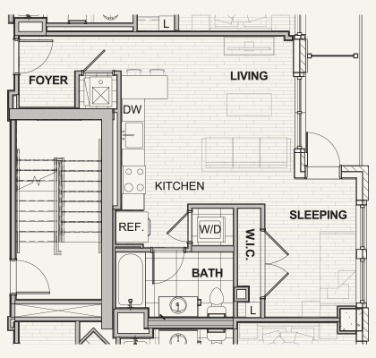 This one bedroom + den apartment is a spacious 877sf with balcony overlooking Lafayette Street. Walk-in closet, large entry way, stainless appliances including washer & dryer are just some of the amenities.