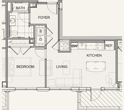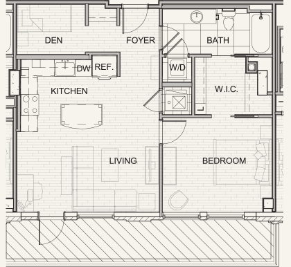 This one bedroom + den apartment is a spacious 857sf including balcony. Walk-in closet, large entry way, stainless appliances including washer & dryer are just some of the amenities.